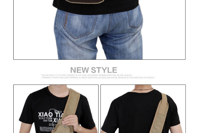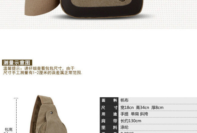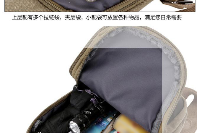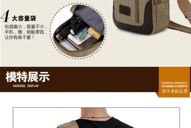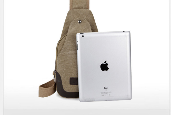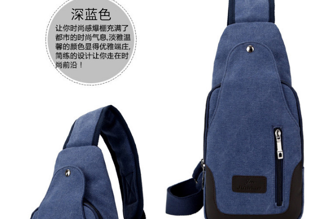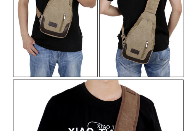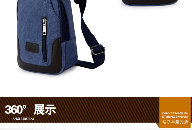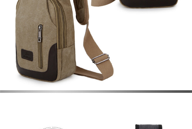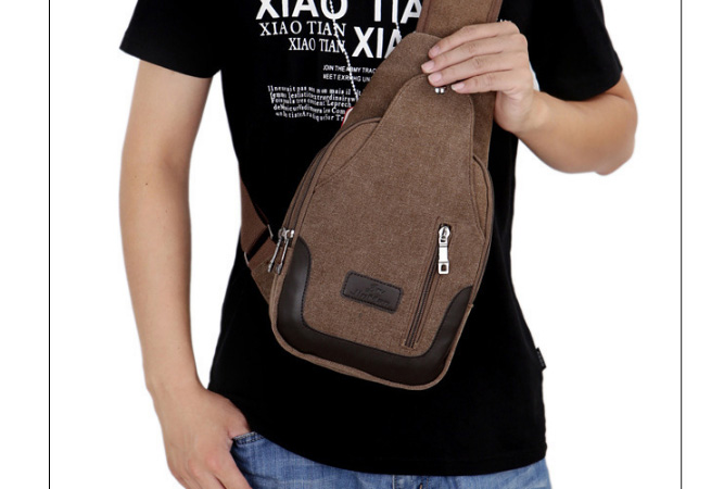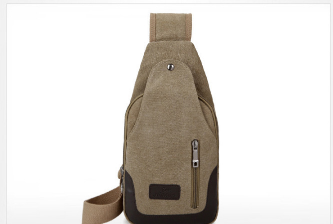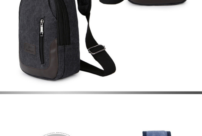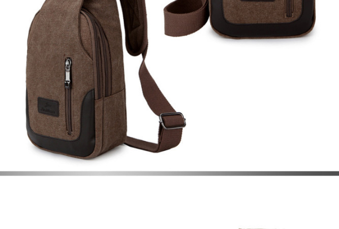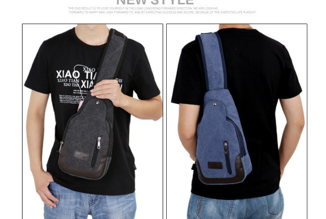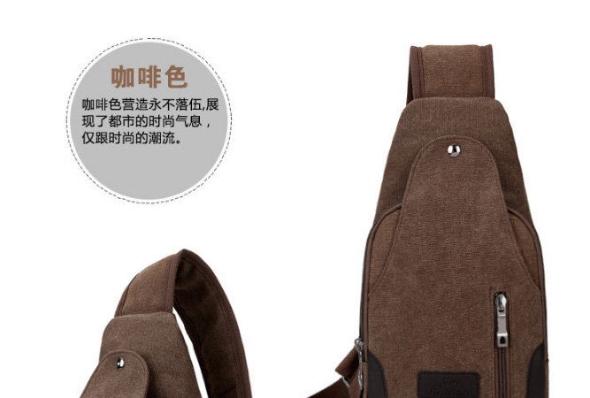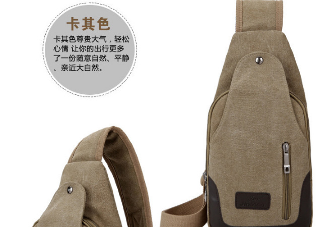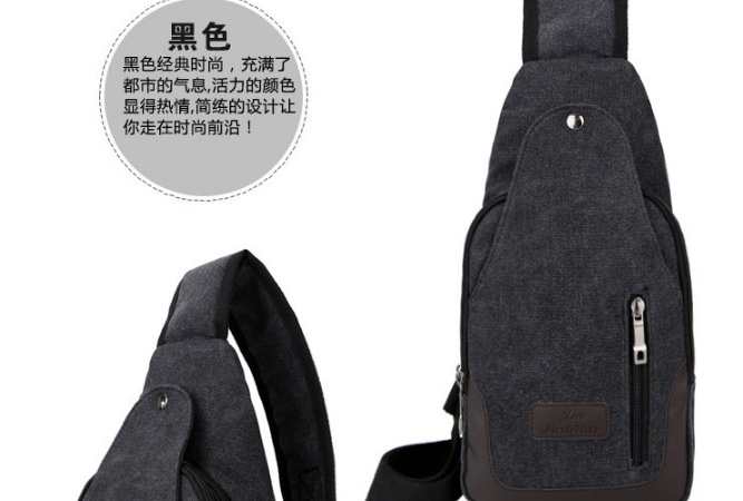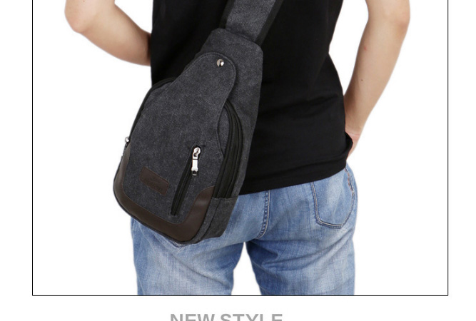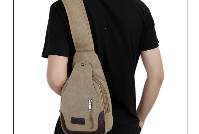男士雙拉鍊帆布胸包,休閒騎行戶外防盜單肩斜挎包,時尚潮流