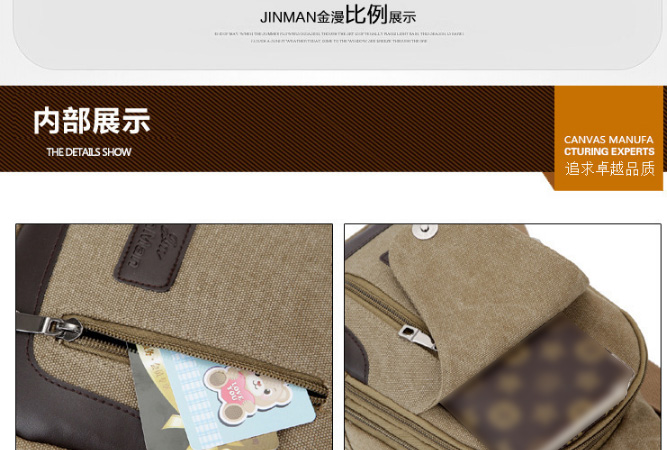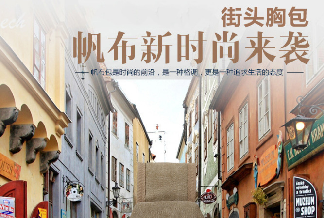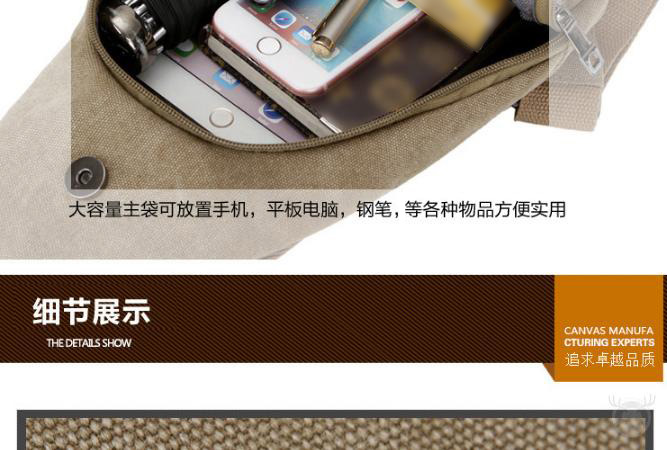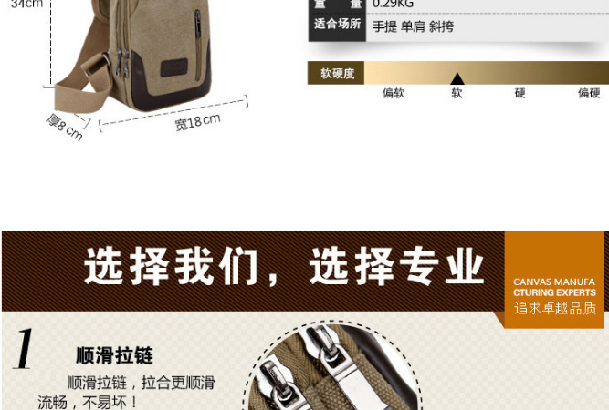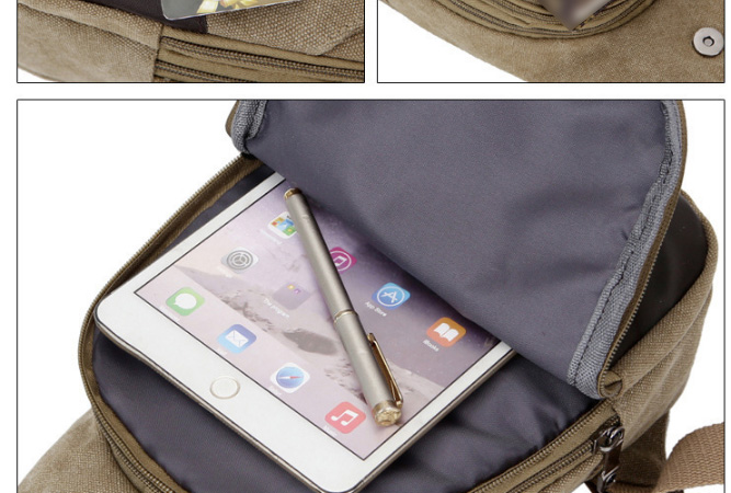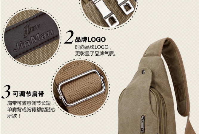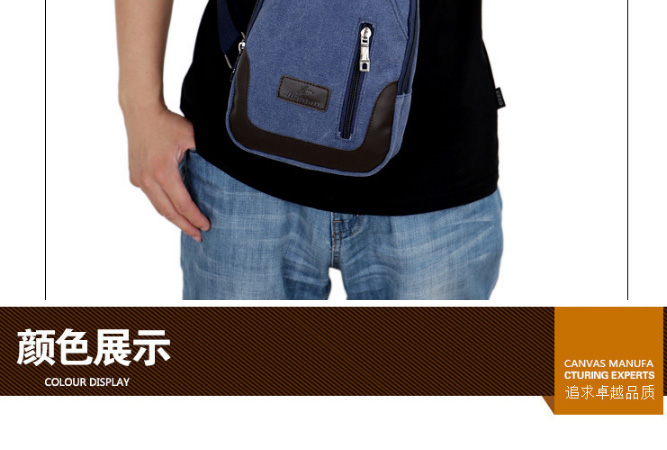 男士雙拉鍊帆布胸包