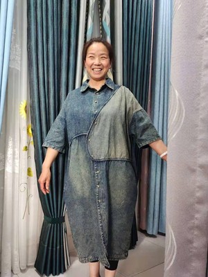 古文藝,不規則拼接,寬鬆顯瘦連衣裙