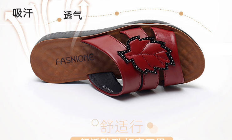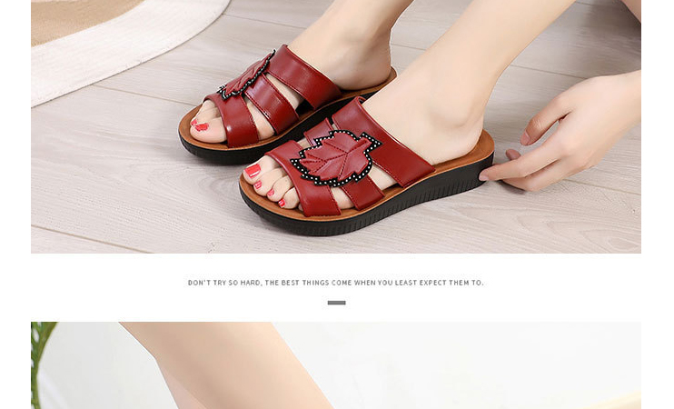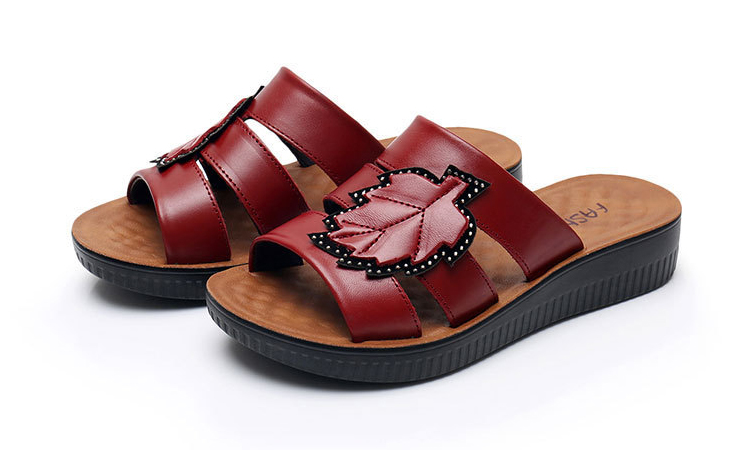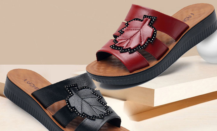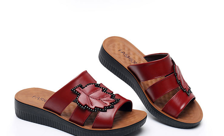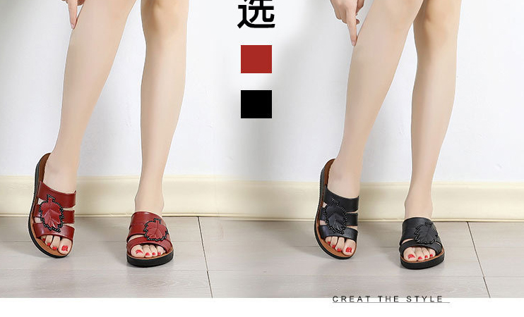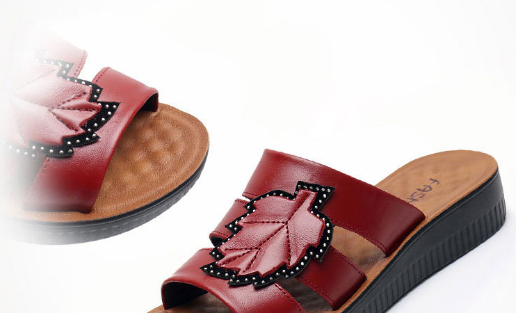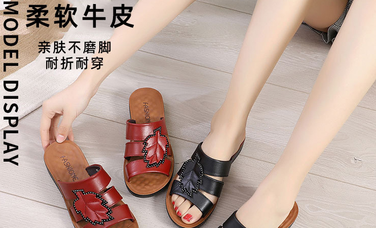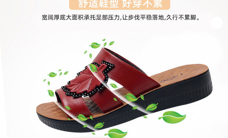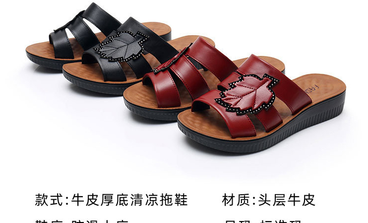 牛皮楓葉涼拖鞋,親膚不磨腳,耐折耐穿
