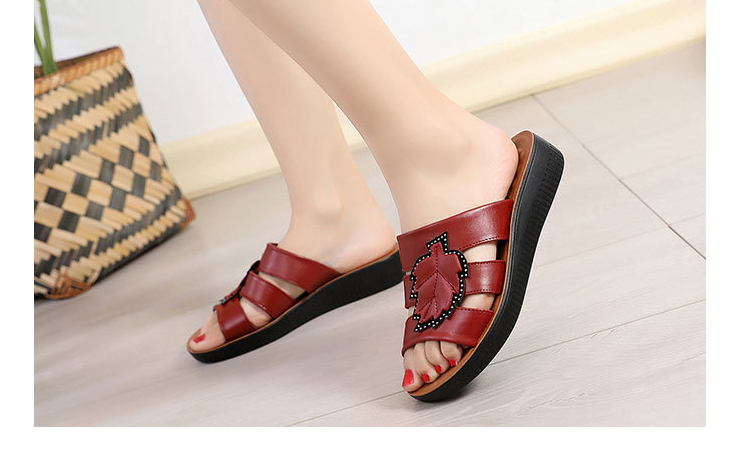 牛皮楓葉涼拖鞋