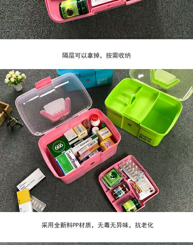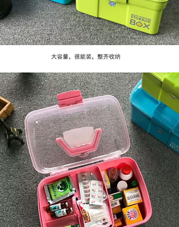 寶貝很漂亮,沒有色差,做工很精細,容量真的很大,一家的藥物都可以放得下!