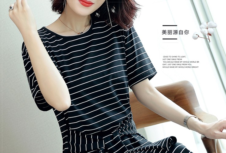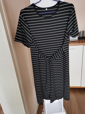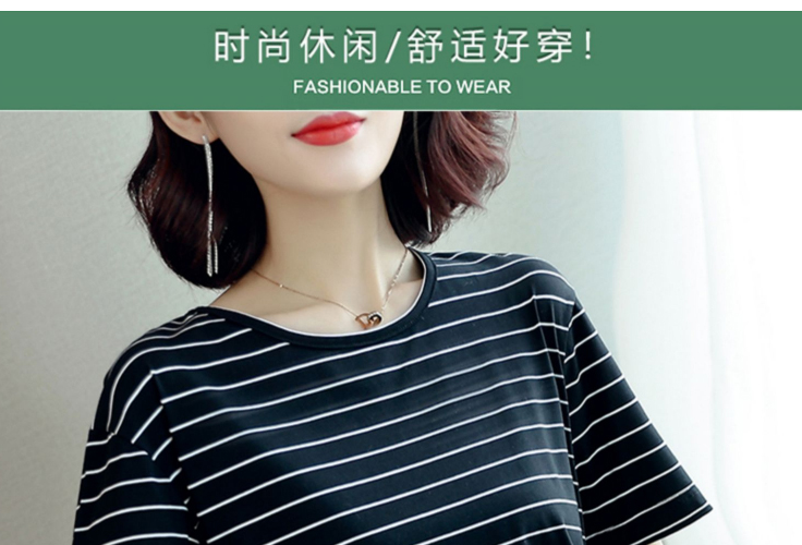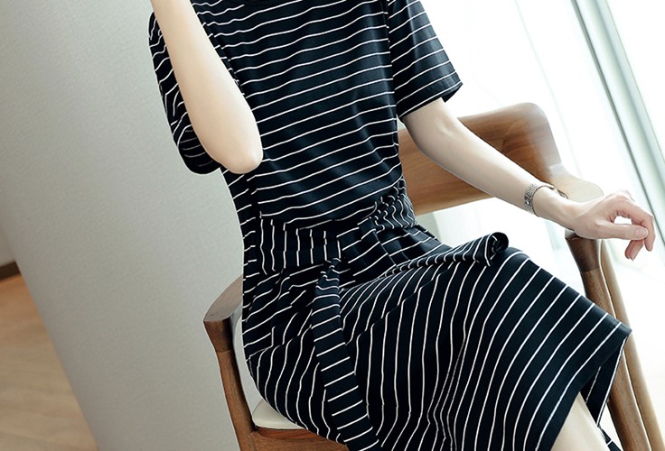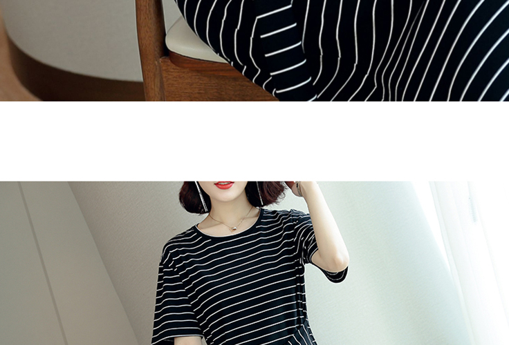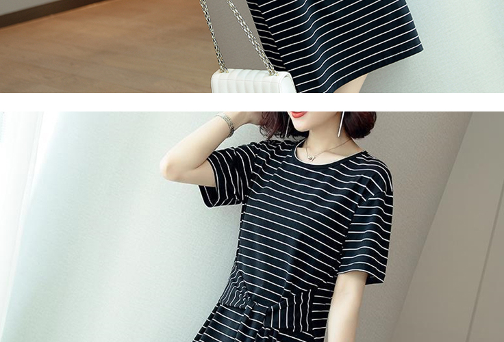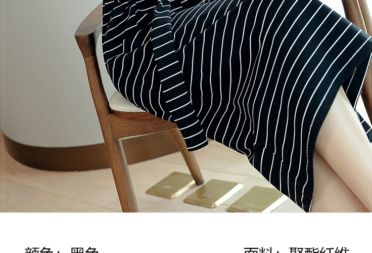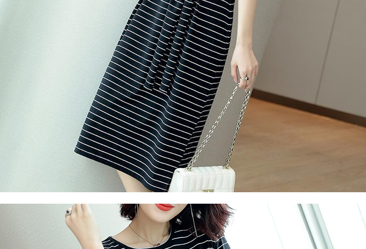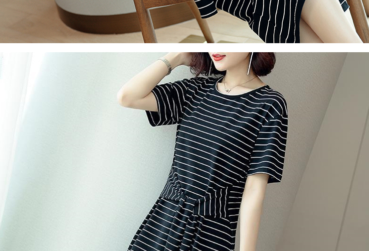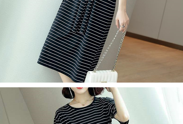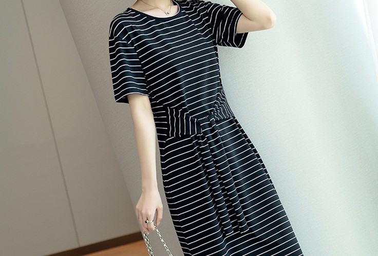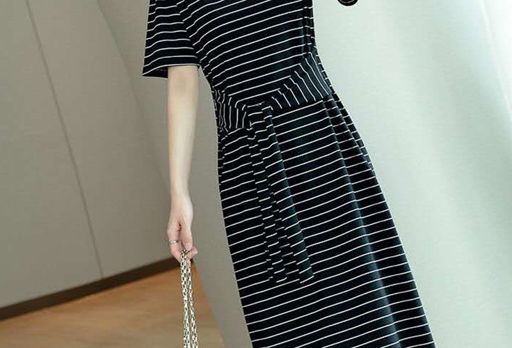 寬鬆大碼,顯瘦中長款,收腰條紋裙。