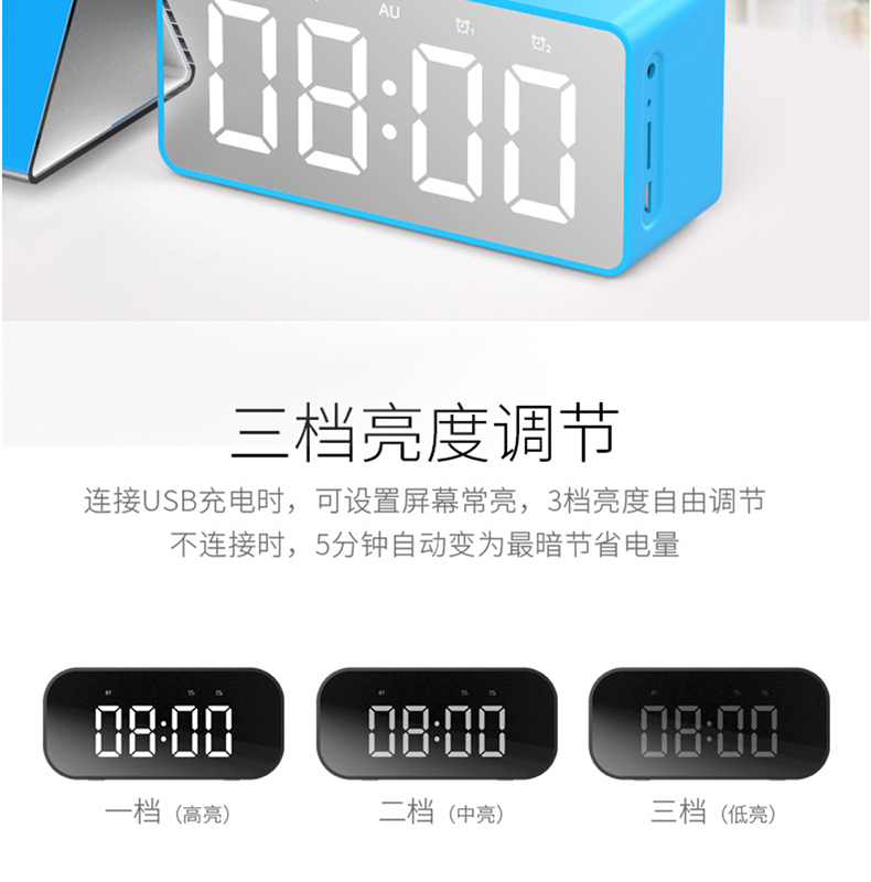 多功能鏡面鬧鍾藍牙音箱