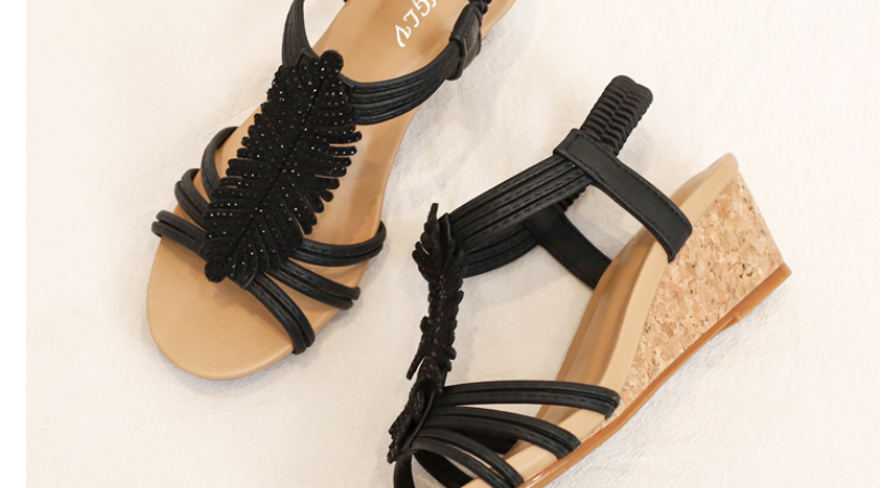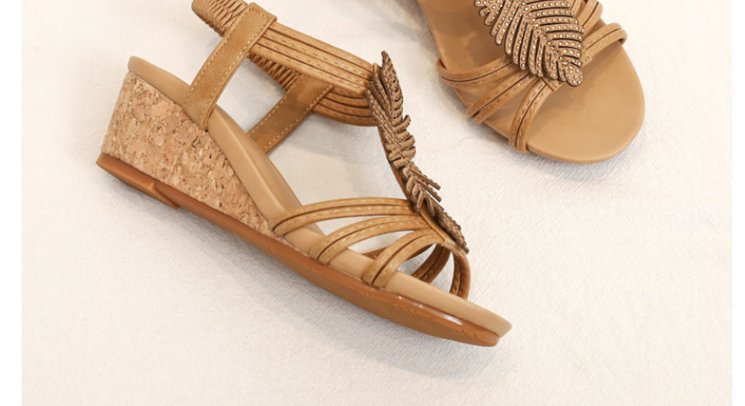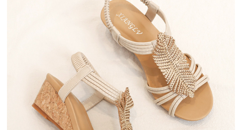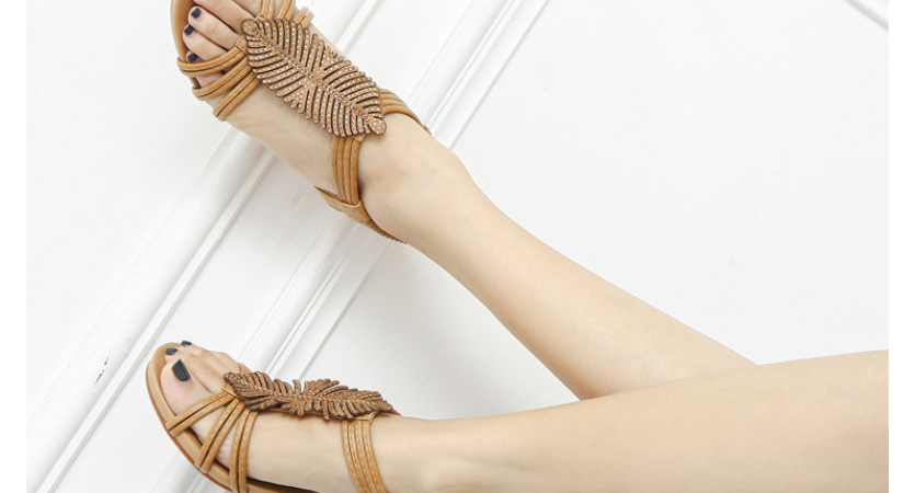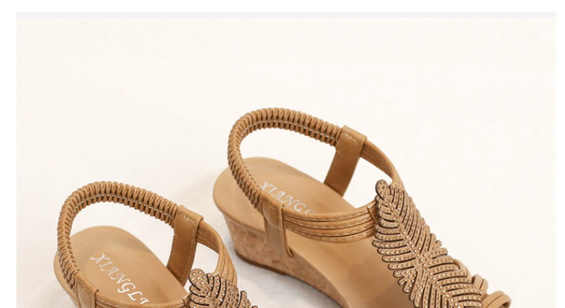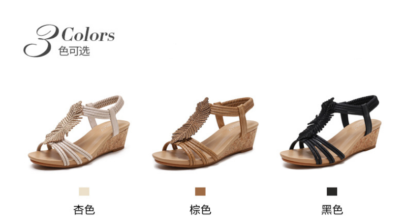 【限時特賣】時尚百搭的水鑽羽毛坡跟涼鞋【原價$1076】【瘋殺價僅$ 538】【官方正品】七天無理由退換貨,物超所值!月銷過萬,歡迎搶購!