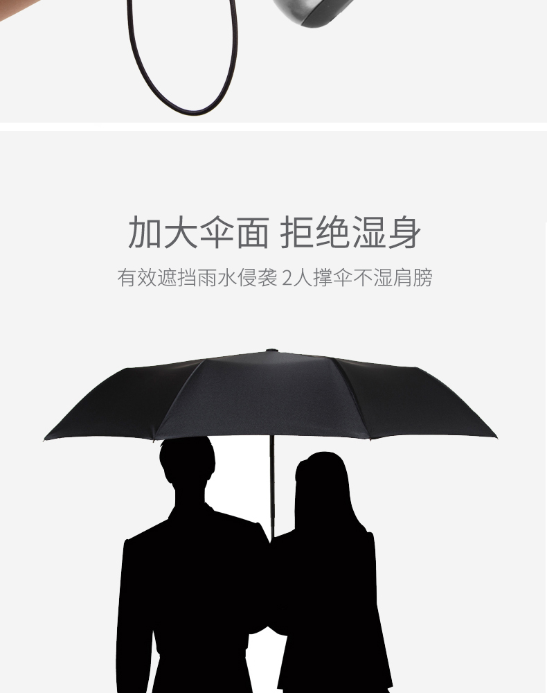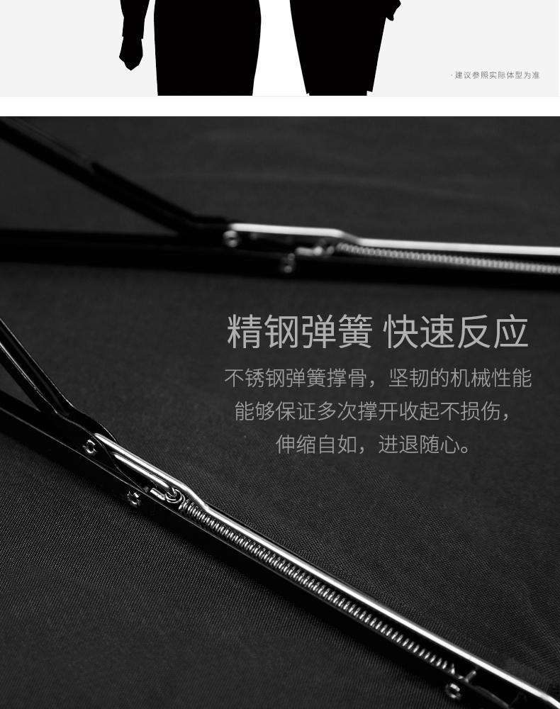 傘比想象得大一些,2個人撐完全沒問題,彈簧有力,開起來很快很順暢,收回來要用手輔助一下