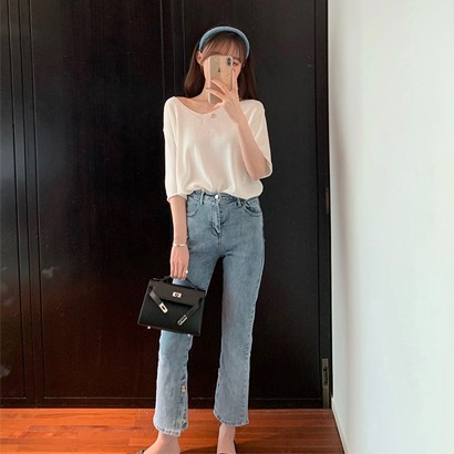 高腰牛仔九分褲