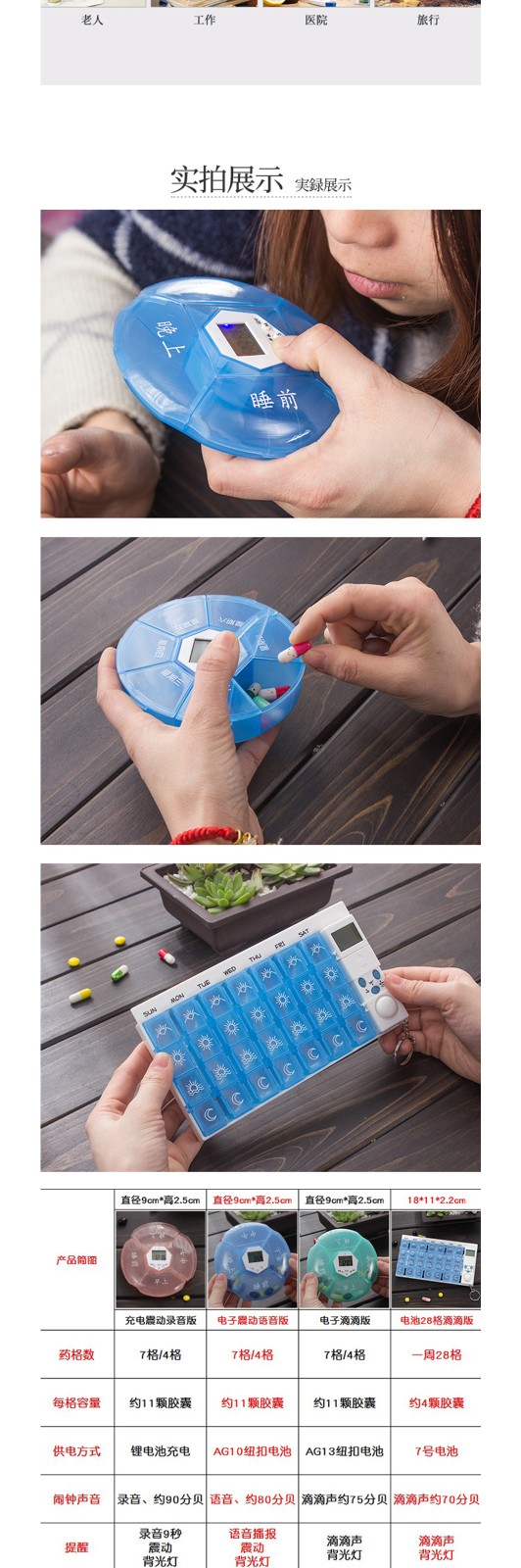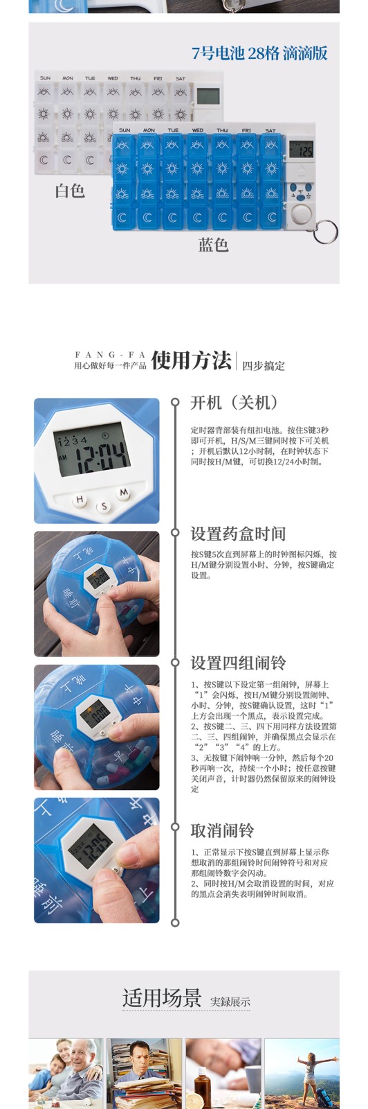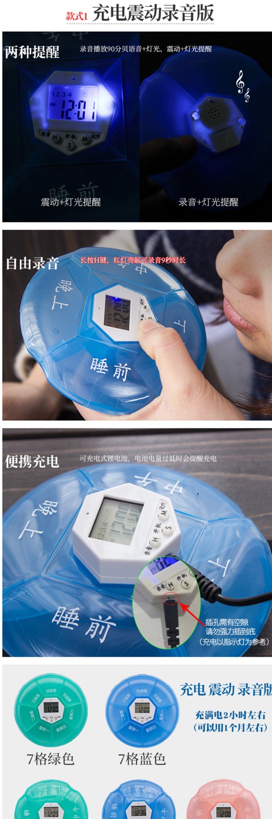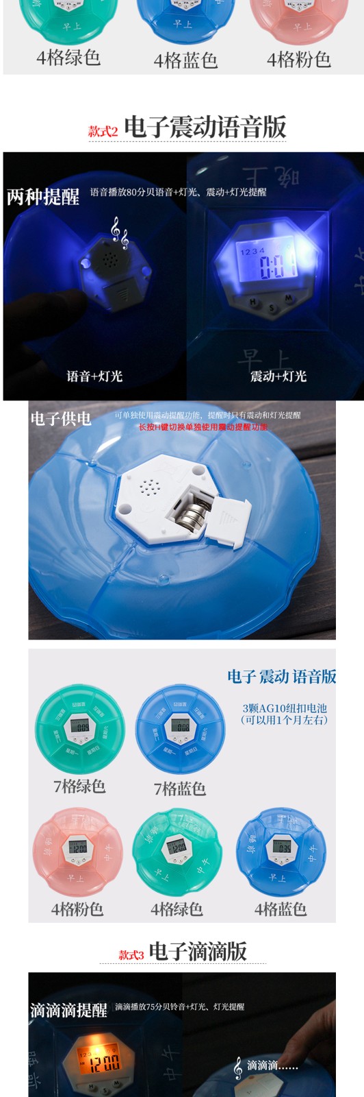 已經按說明設置好了時間,很簡單,很容易操作。試了下聲音,在安靜的辦公室裡還是比較大的,但是如果在室外,又放在包裡的話,可能就有點懸了。總體很滿意,送的藥盒也很能裝,電池送那麼多老闆真是太實在了
