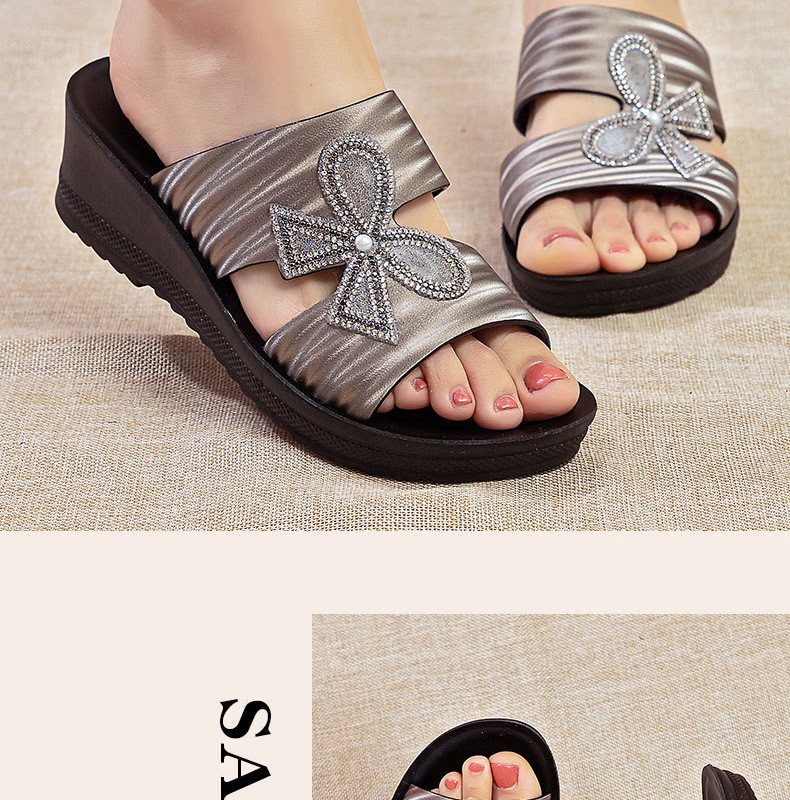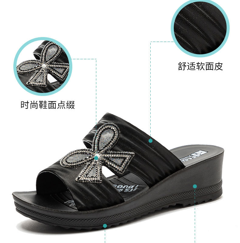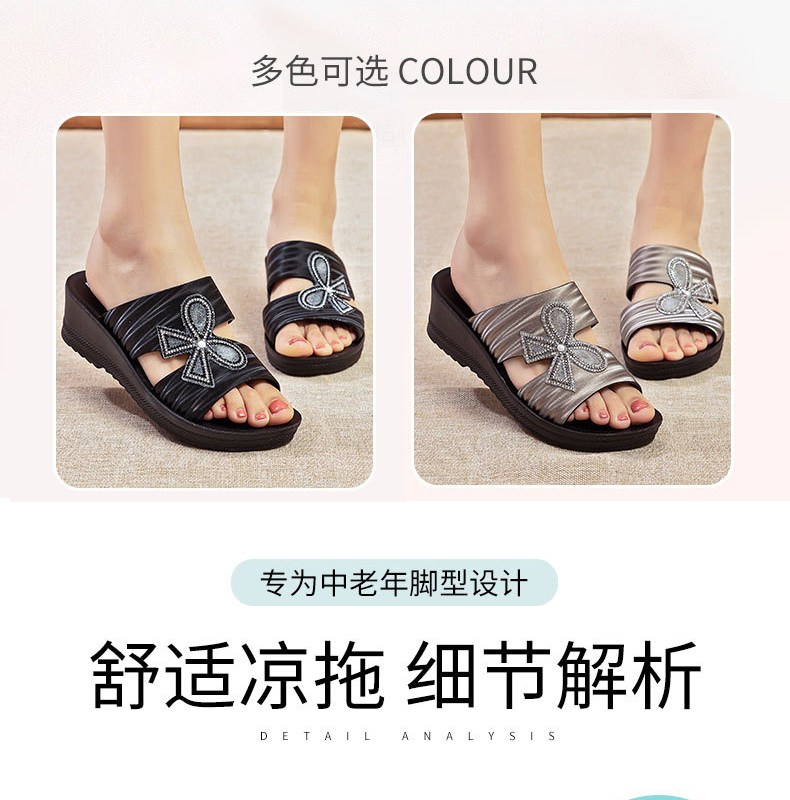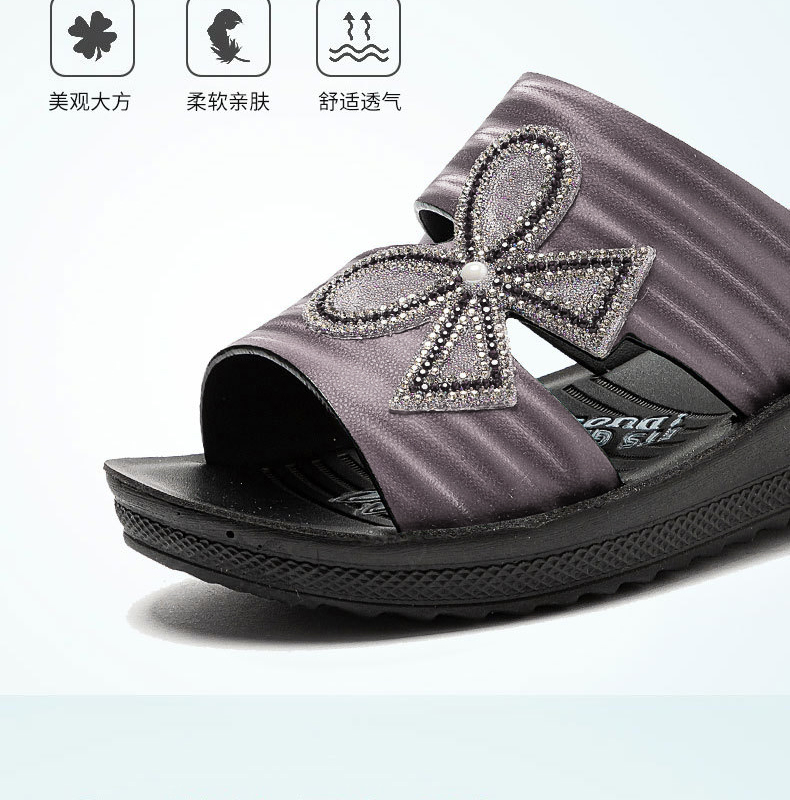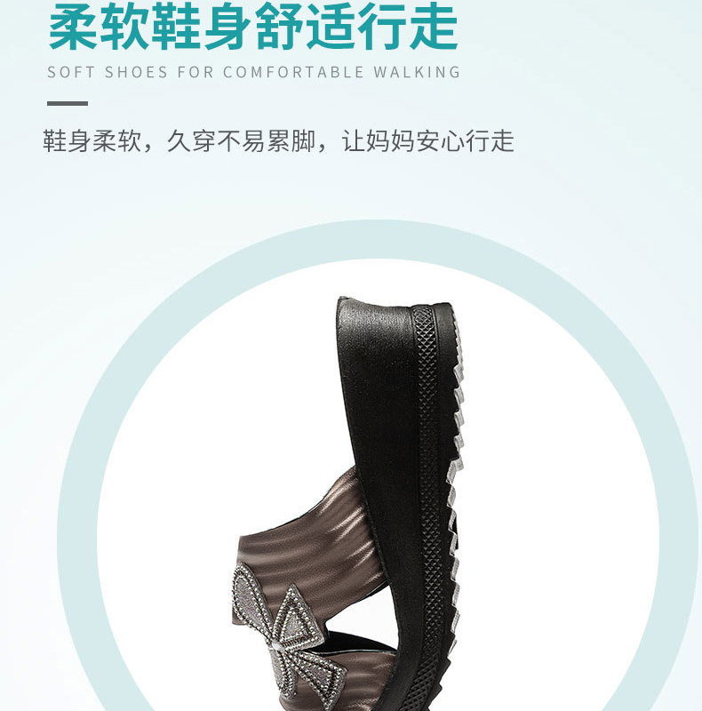 舒適軟皮,時尚蝴蝶結點綴。手感細膩,做工細緻,讓媽媽穿的舒適又美觀