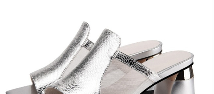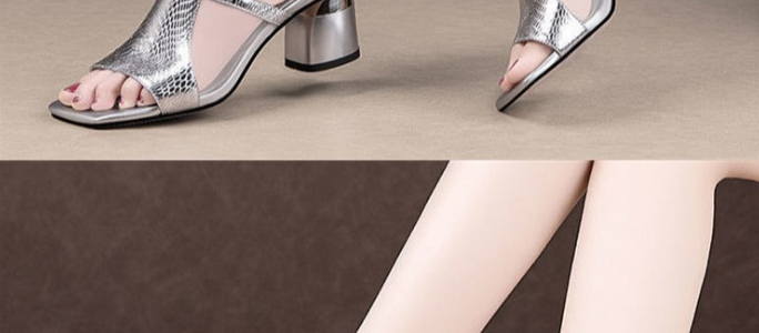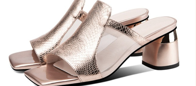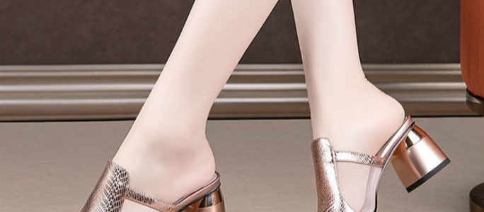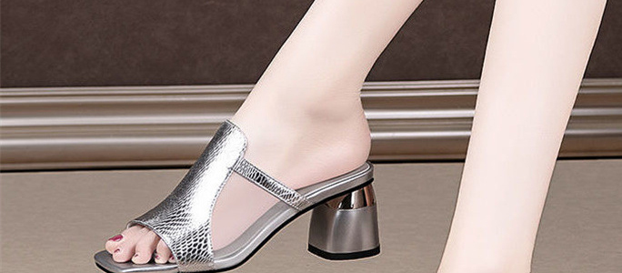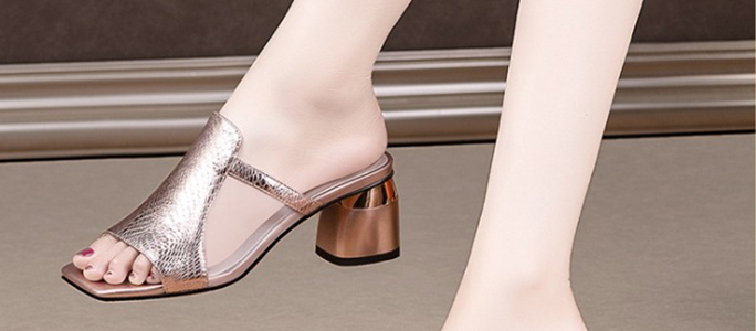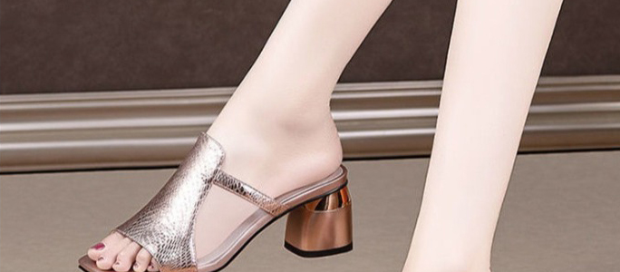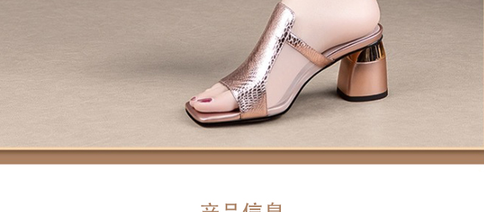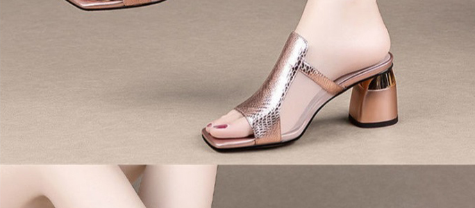 方頭粗跟拖鞋